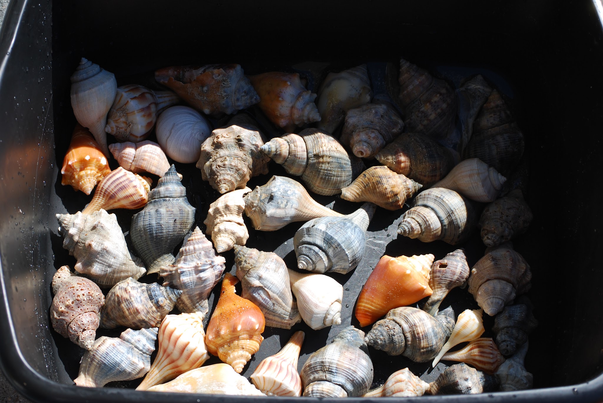 The first and most important thing to remember is that shells are houses for living sea life and it is imperative that we only keep empty houses. In almost all beach communities, it is illegal to keep live specimens. Please check carefully for live snails, crabs and other sea life in all shells. Look inside, rinse in the ocean, tap gently, and really inspect them. When you are satisfied that your treasure is void of all life, then put it in your bag for cleaning.