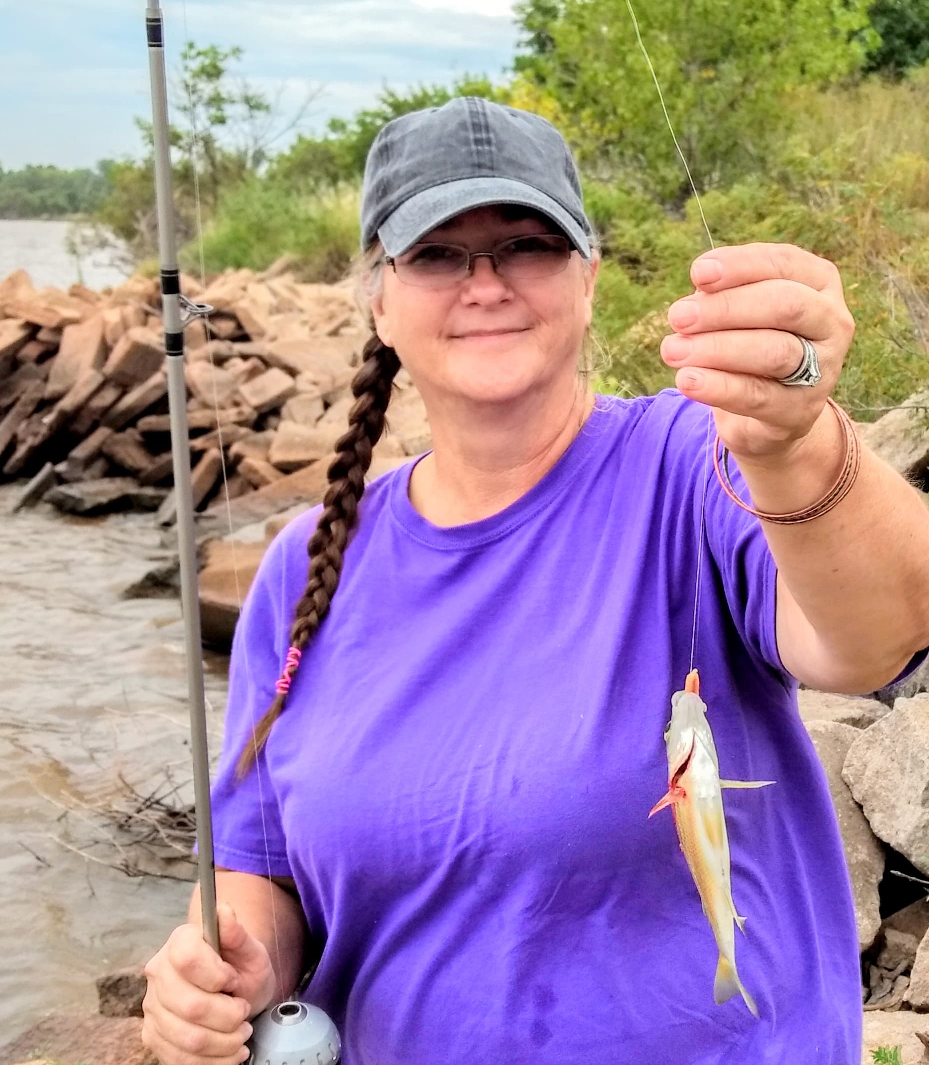 Hubby liked the looks of this spot, so we unloaded and within 20 minutes he had caught 3 small fish for bait. Perfect! He is in fishy heaven and can relax. His day of rest was shaping up just like he wanted it to.