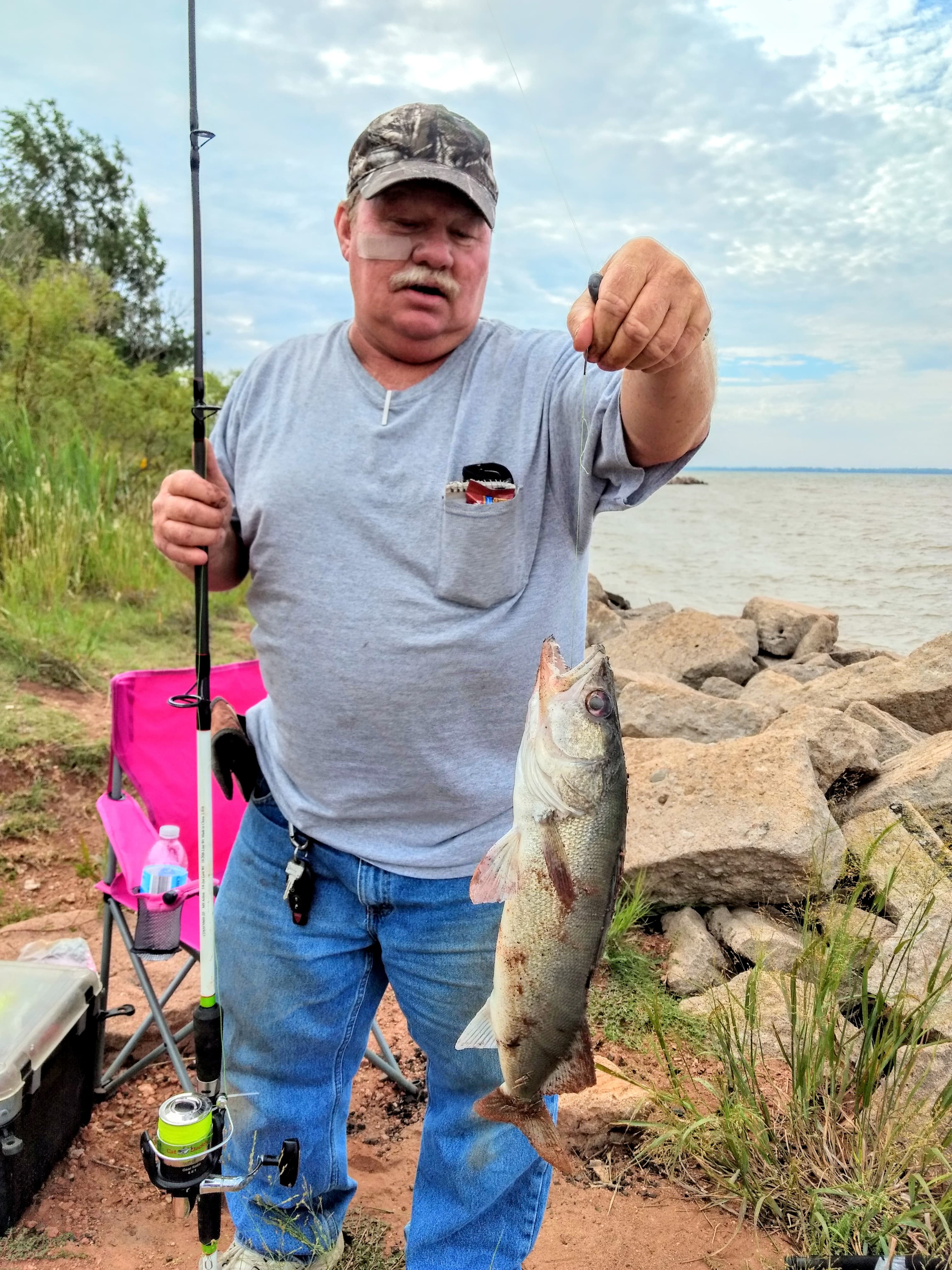 It was a beautiful day, and it didn’t matter that we had to catch and release the fish. The sunshine felt good, and the breeze kept the heat down.