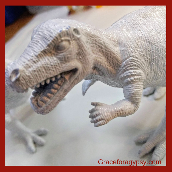 Our Dollar Tree had quite a collection of dinos, saber-tooth tigers, and other animals. These were some of the ones I picked up…
