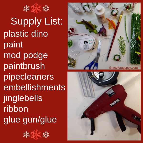 As some of you know, we have 13 grands, 7 of them are boys. But even the girls in my family are interested in Dinosaurs, so when I saw these dinos at Dollar Tree, I knew I would have to make them. I saw these ornaments online last year, but it was too late to make them, so this year, I made sure I got them done and mailed to our grands in time to go on their Christmas trees.